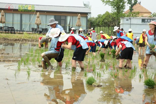 随后,同学们又来到了高标准农田种植体验区,亲手插秧。在农场工作人员的指导下,大家学会了如何插秧、如何浇水等农田管理技能。通过这一环节,同学们深刻体会到了劳动的艰辛和收获的不易。