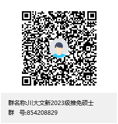 申请人请加入“川大文新2023级推免硕士”QQ群(群号:854208829, 也可扫描以下二维码进入),该群需实名认证,认证方式是“姓名+所在公司”。
