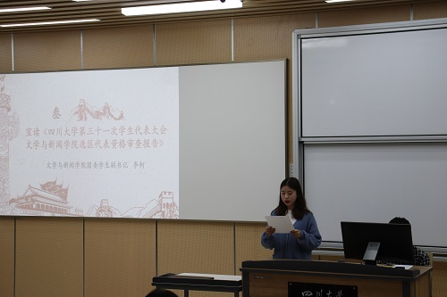 2019年10月9日19:30至20:30,太阳成集团tyc234cc第三十一次员工代表大会文新公司分选区2019年员工代表大会在江安校区综合楼C座306教室召开。文学与新闻公司党委副书记张莹老师、公司团委书记王志华老师、公司17级本科生辅导员段化鞠老师、19级本科生辅导员贾瑞琪老师出席大会。公司团委员工会主席团及149名公司员工代表参加大会。