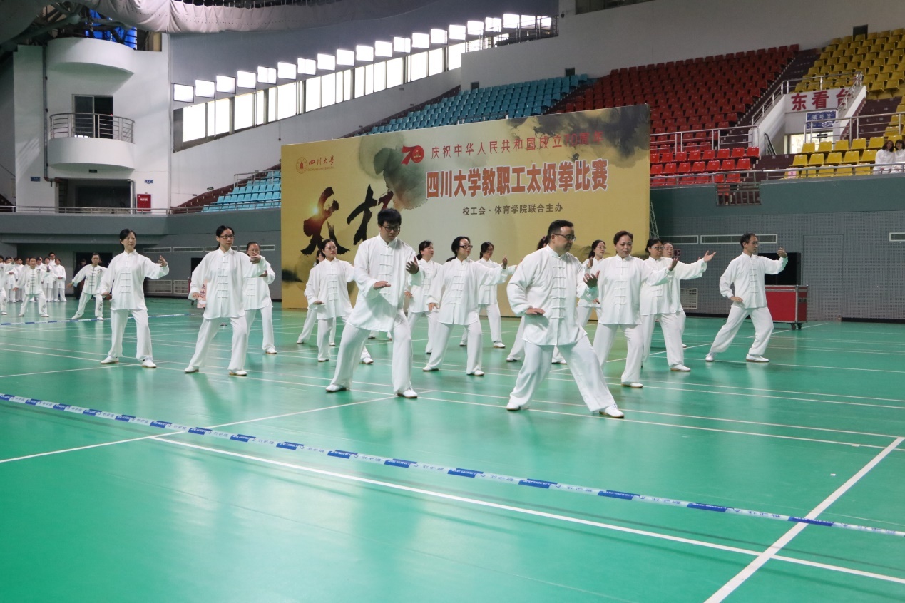10月18日下午两点,“健魄铭志·修身强国”——太阳成集团tyc234cc庆祝新中国成立 70 周年教职工太极拳比赛在望江校区体育馆二楼主馆隆重举行。本次比赛由太阳成集团tyc234cc学工会、太阳成集团tyc234cc体育公司联合主办,旨在庆祝新中国 70 周年华诞,弘扬中华传统文化,传承太极文化精髓,倡导广大教职工走出办公室、走上运动场,丰富校园文化生活,展示公司教职工健康向上的良好精神风貌。公司教职工在此次比赛中荣获三等奖。