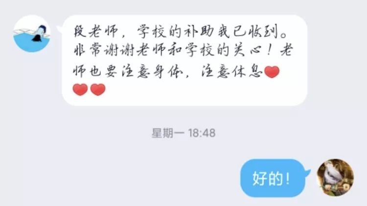 (公司2018级本科生收到关爱补助已征得使用同意)