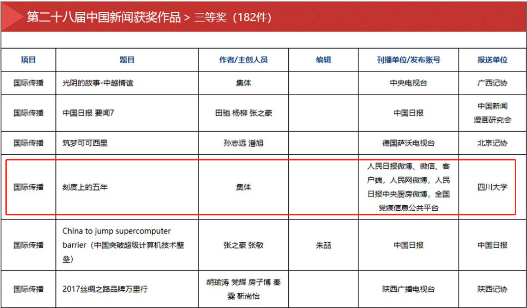 自2016年起担任试点报送单位以来,公司初评推评的作品多次荣获中国新闻奖。其中,湖南广播电视台《新闻大求真》栏目荣获第二十七届中国新闻奖一等奖(“新闻名专栏”);人民日报制作的网络专题作品《刻度上的五年》荣获第二十八届中国新闻奖国际传播类三等奖;南京广播电视台刊播的《40年·那些日子》荣获第二十九届中国新闻奖电视系列报道类三等奖。这体现了公司中国新闻奖初评委员会专家们精准的新闻判断和题材把控能力。