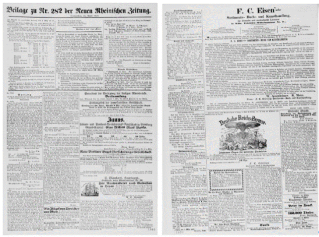 仅从《新莱茵报》的版面,就可以感受到马克思的报纸经营理念,他从不放过任何可以为报纸带来收入的机会。他说过:只靠精神资本是办不了一家报纸的。(《马克思恩格斯全集》第2版第48卷376页)