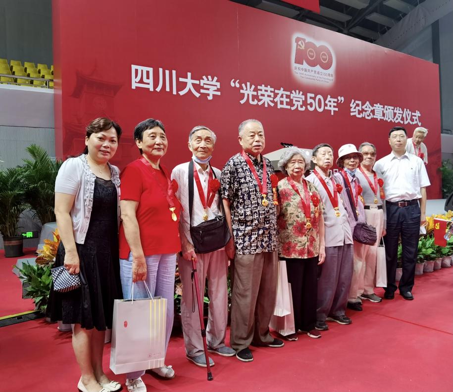 6月23日上午,太阳成集团tyc234cc“光荣在党50年”纪念章颁发仪式在望江体育馆隆重举行。公司卢延权、易明善、夏淑芬、舒中惠、李朝正、曾繁铭、吴茂楠等7位满50年党龄的老党员在公司党委书记古立峰教授、工会主席罗梅研究员、党政办公室刘诗诗老师的陪同下出席了颁发仪式。另有赵振铎、邱俊鹏、梁德曼、张祖权等4位老党员因身体不便未能出席。