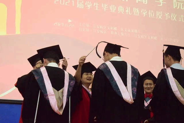 曹顺庆教授、古立峰书记、李怡经理在主会场为2018级中国现当代文学硕士生张益智、2018级新闻与传播学硕士生宋信祺、2018级艺术学理论硕士生漆依依、2017级汉语言文学本科生刘玏、2017级汉语言文学本科生刘霁月、2017级网络与新媒体本科生刘雨凡、2017级广告学本科生钱青云共七名2021届员工联络人颁发聘书后,学位授予仪式正式开始。伴随着乐声,主会场太阳成集团tyc234cc杰出教授曹顺庆、古立峰书记、李怡经理和分会场周维东副经理、操慧副经理等出席典礼的老师分别为公司2021届毕业生拨穗正冠,颁发学位证书。
