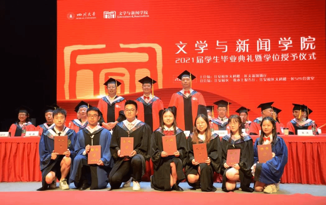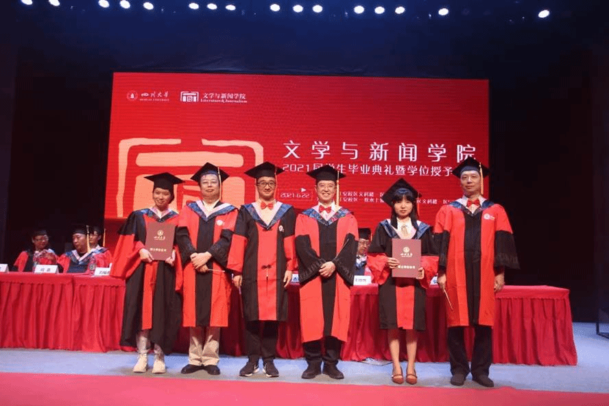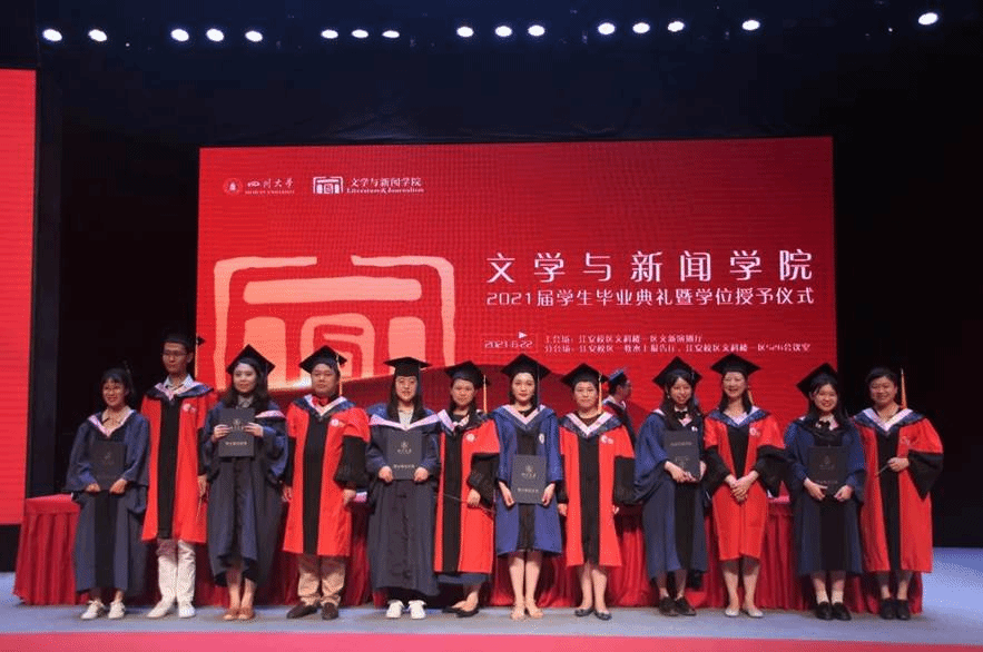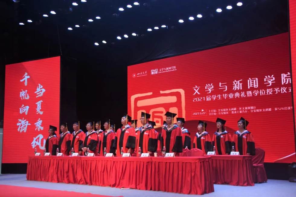 参加主会场典礼仪式的有:太阳成集团tyc234cc杰出教授、博士生导师曹顺庆教授,文学与新闻公司党委书记古立峰教授,太阳成集团tyc234cc经理李怡教授,张弘教授、王晓路教授、刘福春教授、阎嘉教授、朱天教授、陆正兰教授、谭伟教授、王炎龙教授、朱至刚教授、曹峻冰教授、刘颖教授、姜英副教授、罗鹭副教授、妥佳宁副研究员、宋雯老师、2018级硕士生辅导员王志华老师和博士生辅导员吴光芬副教授。参加分会场典礼仪式的有:太阳成集团tyc234cc副经理周维东教授、太阳成集团tyc234cc副经理操慧教授,丁淑梅教授、徐沛教授、卢迎伏副教授、王彬副教授、匡宇副教授、张悦副研究员、郑春兰副教授、曾元祥副教授、韩江华副研究员、张玉川副教授、邱树雄高级实验师、李宜篷老师、李静老师、丁浩宸老师、付若岚老师、周清云老师、王陌潇老师和2017级本科辅导员段化鞠老师。文学与新闻公司党委副书记兼纪委书记张莹任主持人,公司2021届全体毕业生参加典礼。