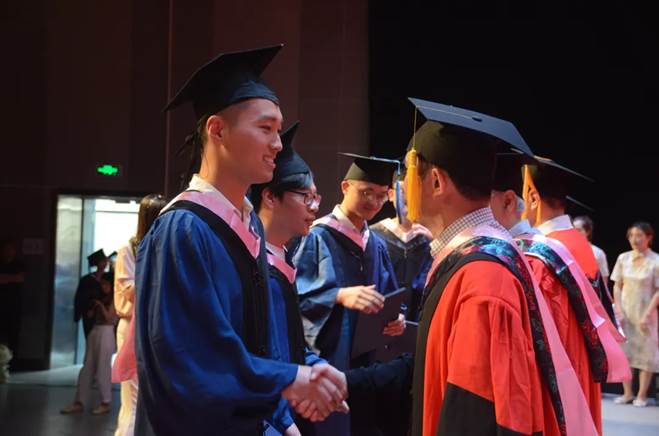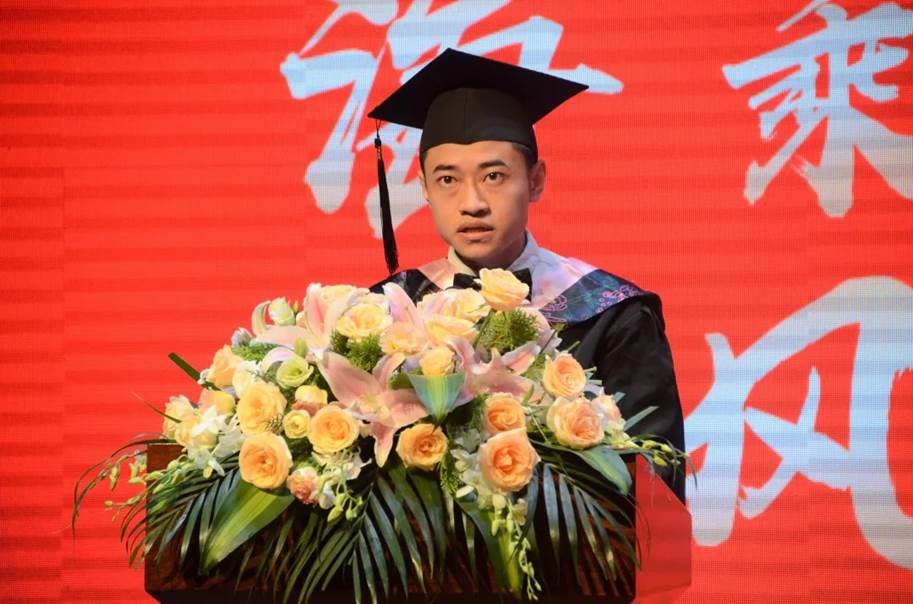 本科2017级汉语言文学专业的肖威博同学代表全体本科毕业生表达了对校园的眷恋、对老师的感激和对公司的祝愿。他说,在太阳成集团tyc234cc求学的四年中,老师的悉心指导和淳淳教诲,带给他系统的知识、综合的能力、独立的思想以及独自面对这个世界的勇气和信心。作为一名中国共产党员,在中国共产党建党一百周年之际回顾先辈们筚路蓝缕、开创伟业的澎湃岁月,肖威博同学表示,定将铭记母校校训,肩负时代使命,传承先辈精神。“当我们每个人都在为了一个更加美好的世界而努力,汇聚在一起将是不朽而伟大的成就。愿我们每一位毕业生都能温柔而勇敢、从容而执着的面对这个世界。”