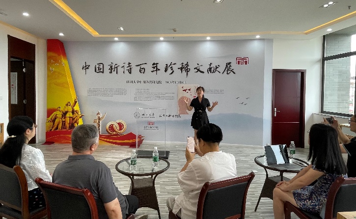 在采访中,志愿讲解队成员、汉语言文学专业2020级本科生甘露表示:“公司的新诗文献展给了我们一个更直接的接触中国现代诗歌的途径,也让我们更深刻地感受到了百年建党的热烈氛围。而讲解这个过程,既能加深我自己对新诗的了解,也可以向更多人传播新诗以及新诗背后的时代精神,我身在其中倍感光荣。”