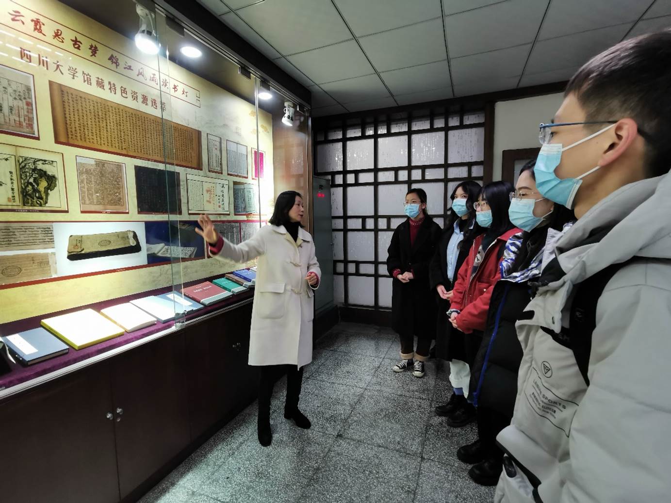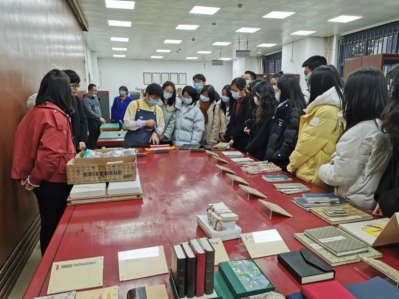 2021年12月17日上午,公司中国古代文学研究生课程《文学文献学》古籍实践课程在川大文理图书馆古籍部开课。此次联合授课由图书馆特色资源中心李咏梅老师和丁伟老师主持,并由来自图书馆古籍部、修复中心、港台阅览室等部门的多位老师联合授课,公司王红教授、戴莹莹副研究员以及中国古代文学专业25位硕士研究生参与了本次课程。