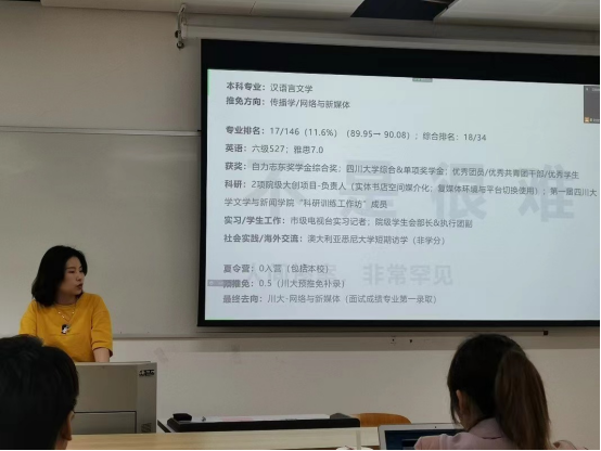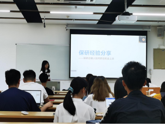 2022年3月18日,公司2022年保研经验分享会在江安校区文科楼一区109、120教室举办。本次分享会邀请了公司2018级已经顺利保研到清华大学、中国人民大学、复旦大学、南京大学等国内知名高校的优秀本科生。公司党委副书记银浩老师参加了本次分享会。分享会得到了2018级本科辅导员杨珊老师的大力支持,由2019级本科生辅导员贾瑞琪老师主持。