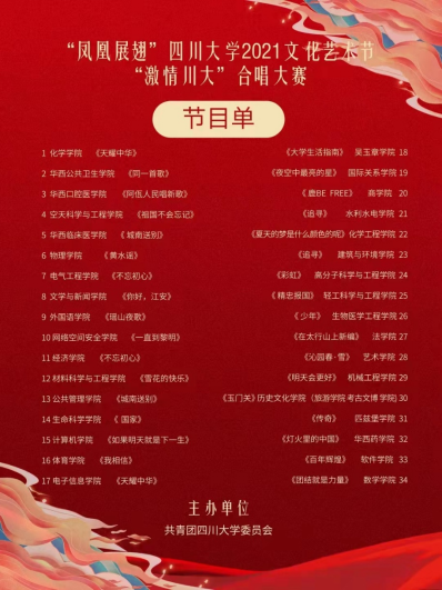 2022年4月16日下午,由公司团委主办的“凤凰展翅”2021年文化艺术节“激情川大”合唱大赛(初赛)在江安校区体育馆举行。受疫情影响,原定于2021年12月举办的合唱大赛延期至今年四月,活动全程严格遵守各级疫情防控规定和相关要求。公司严格把关参与师生的健康情况,除上台参演队伍外,现场所有参与人员全程规范佩戴一次性医用口罩,现场取消大众评审座位,评委嘉宾隔座入座,工作人员保持适当距离,各公司参赛队伍均采取“即赛即退场”形式。
