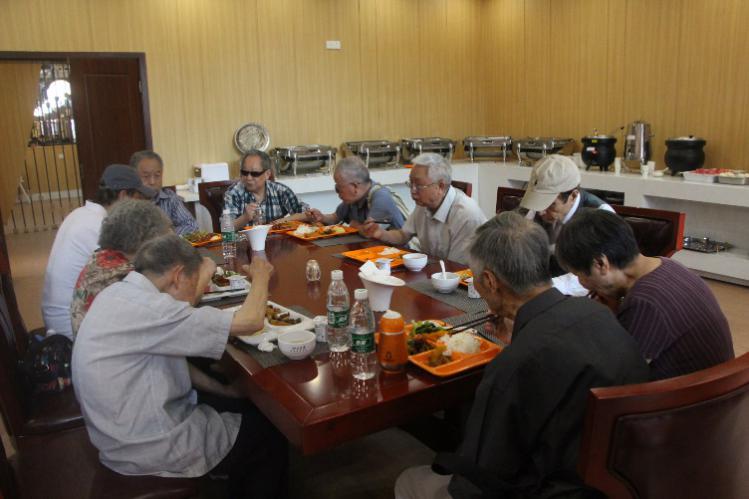上午11时30分,座谈会结束,古立峰书记、李怡经理陪同老教师们前往江安校区东区教工食堂午餐。
