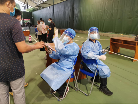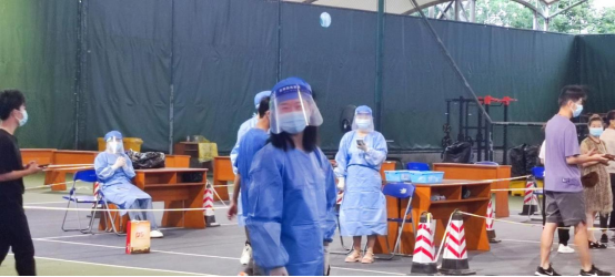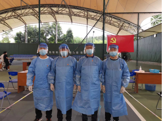 公司教师党员在江安校区网球场核酸检测点工作现场