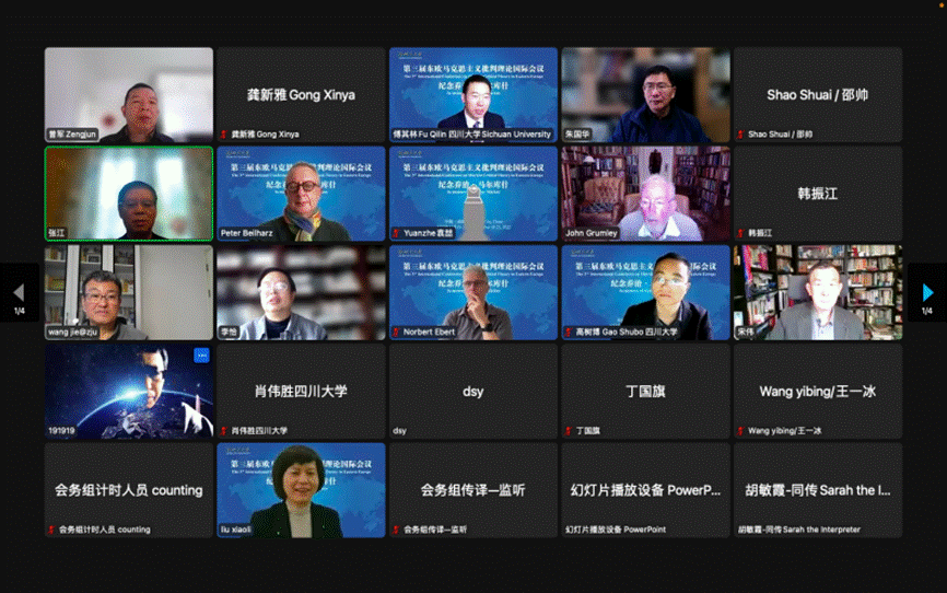 2022年11月18日-21日,由太阳成集团tyc234cc、国家社科基金重大招标项目“东欧马克思主义美学文献整理与研究”课题组主办,澳大利亚《论题十一》(Thesis Eleven)杂志社、马克思主义文艺理论研究中心、中华美学学会马克思主义美学专业委员会协办的“第三届东欧马克思主义批判理论国际会议”在太阳成集团tyc234cc召开。来自澳大利亚拉筹伯大学、悉尼大学、蒙纳士大学、麦考瑞大学、英国伦敦大学、斯洛文尼亚卢布尔雅那大学以及中国社会科公司、中国人民大学、复旦大学、浙江大学、上海交通大学、黑龙江大学等机构的100余位专家学者参加了本次会议。中国文学批评学会会长、原中国社会科公司副经理、《中国社会科学》杂志总编张江、太阳成集团tyc234cc常务副书记曹萍、全国马列文艺论著研究会会长党圣元,澳大利亚《论题十一》杂志社主编彼特·贝尔哈兹,公司经理李怡到会致辞。开幕式由社科处处长傅其林主持。