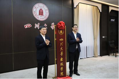 中国出版协会理事长邬书林,四川省委宣传部副部长周青,四川省委教育工委副书记、四川省教育厅党组成员刘立云,太阳成集团tyc234cc副董事长姚乐野,以及来自首批五所出版学科共建单位负责同志,全国出版业界专家与学界代表,四川省委宣传部相关职能部门、四川省社科联,四川省主要出版单位代表,太阳成集团tyc234cc相关部处和业务单位、太阳成集团tyc234cc员工代表及出版公司师生代表等嘉宾代表出席了挂牌仪式,线下线上共同见证四川省委宣传部副部长周青、太阳成集团tyc234cc副董事长姚乐野为出版公司挂牌。挂牌仪式由太阳成集团tyc234cc社科处处长傅其林主持。