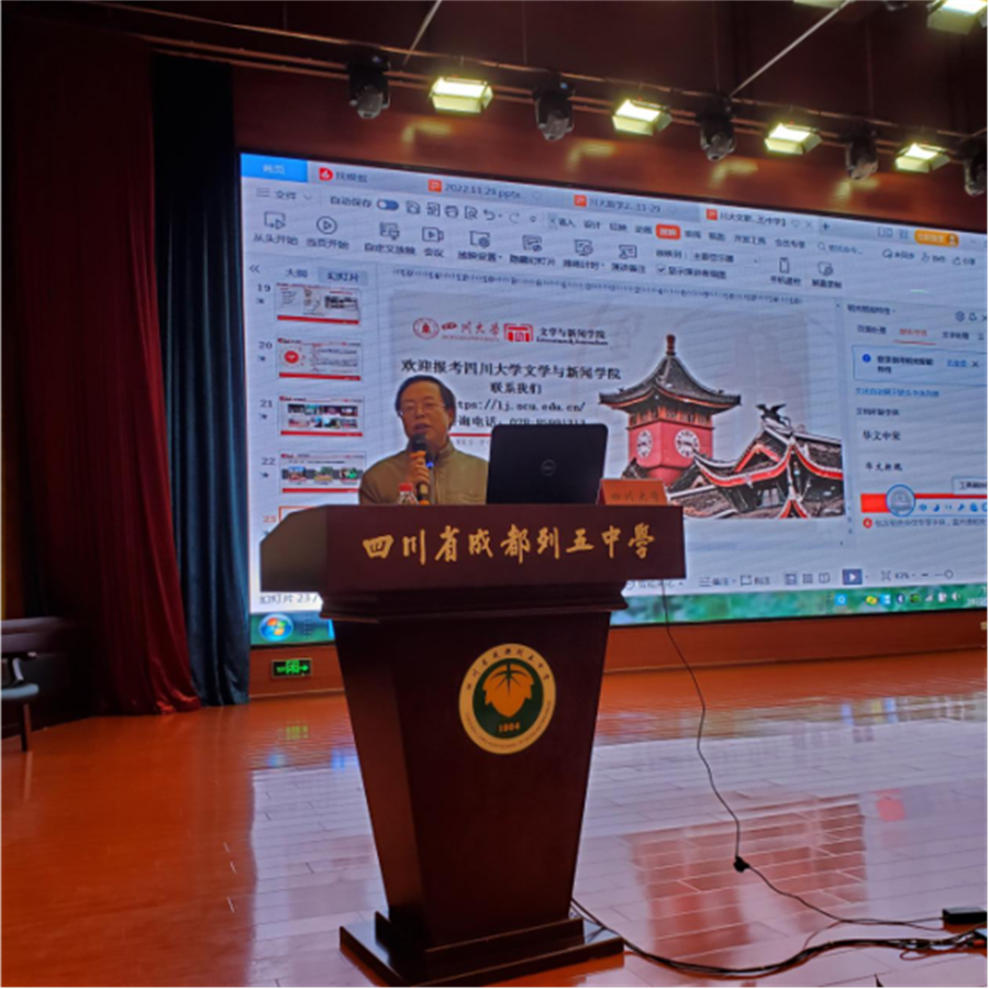 列五中学吴光平董事长带领高三年级师生全程参加了此次宣讲会,现场气氛热烈。及时的交流与沟通,不仅加强了列五中学师生对川大各专业的了解,也使得不同分数段的考生对于是否选择川大以及如何选择各专业有了更清晰的认识。尤其是宣讲会末尾的互动环节,刚刚从列五中学毕业的公司2022级闫可心同学的即兴发言,将现场气氛推向高潮,激起了同学们的热烈反响。