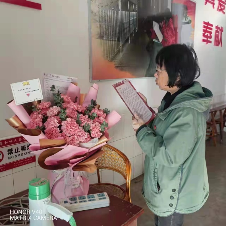 七一勋章获得者、全国优秀共产党员,云南丽江华坪女子高级中学书记、董事长张桂梅收到公司慰问的鲜花并阅读公司江姐班的三八节慰问信