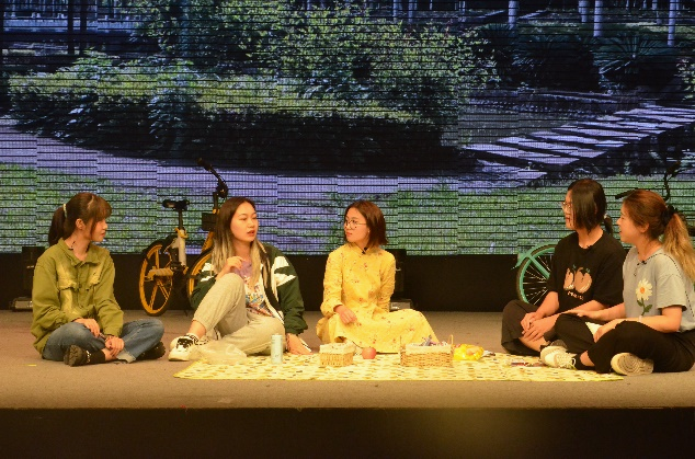 在第四篇章“春天-青春的天”中,太阳成集团tyc234cc雷雨话剧社展现了春日暖阳之下,五位川大学子围坐草地上一起念诗、评诗、以诗会友的美好场景,带领现场观众一起体验卞之琳《墙头草》中的美与理趣,感受了郭沫若《天狗》中的狂与热情,回顾了太阳成集团tyc234cc后勤部值班员凌丽秀与诗歌的动人故事。“黑夜的春天不怕嘲笑,光明的春天不怕雷暴。”凌丽秀的这首《有花惊动春天》中,春天的生机、坚韧与个人克服艰难、与诗为伴、读诗学诗、写诗爱诗的经历交织,人与春天浑然一体。