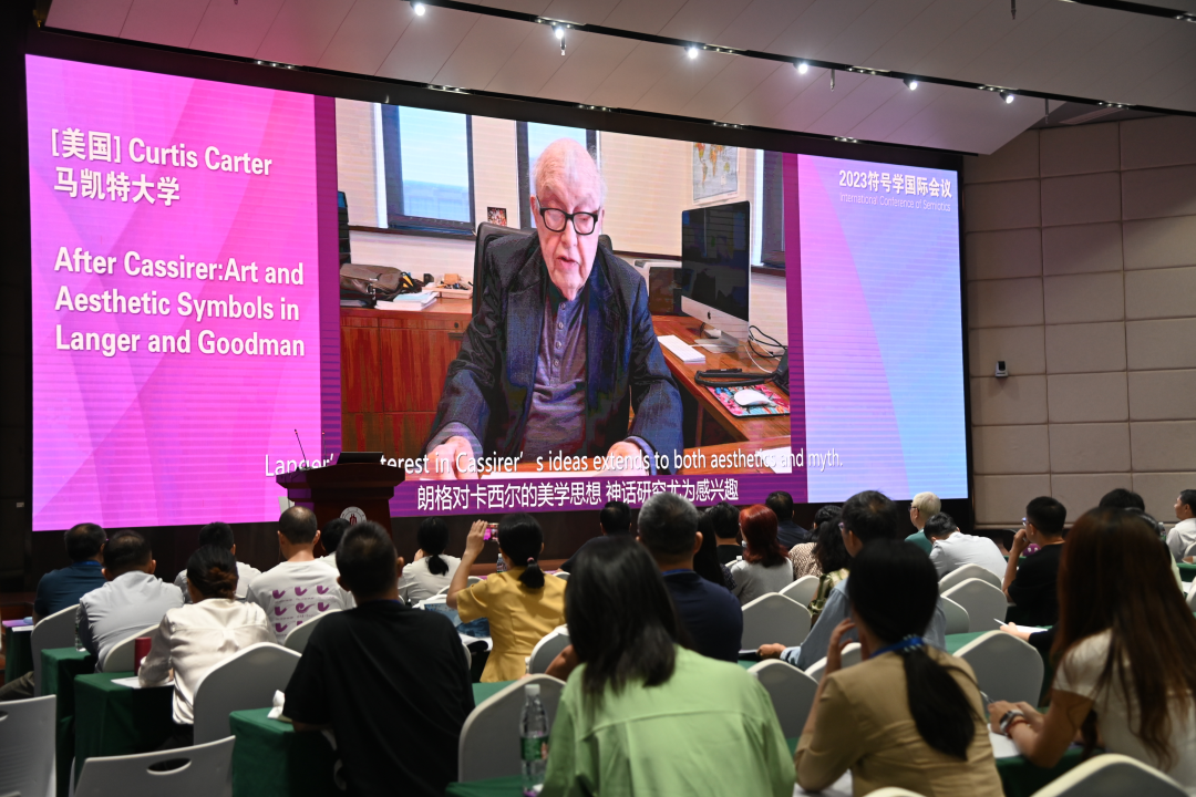 20日上午举办了大会学术报告的下半场,由苏州大学王军教授主持,南京师范大学余红兵教授评议。来自美国马凯特大学的Curtis Carter、南京大学艺术公司的赵奎英、浙江大学传媒与国际文化公司的李杰、瑞典林奈大学的Michael Ranta、意大利都灵大学的Massimo Leone和加拿大康考迪亚大学的Duan Lian采用“线上+线下”的方式分享了他们的学术报告。