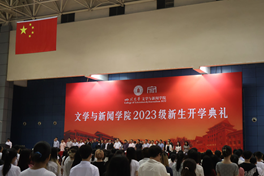 2023级新闻学硕士生张龙赫同学和2023级汉语言文学基地班本科生鲍思妤同学作为新生代表发言。张龙赫同学结合自己作为川大研究生新生、本科老生的学习生活体会进行了分享,他表示,作为一名新时代的老员工,应当在专业学习、社会实践、志愿服务中踏实苦干,在肩负时代重任时行胜于言,以实干创新成就一番事业,交出不负社会责任与使命的优异答卷;鲍思妤同学表示,作为一名文新学子,应在博览群书、求真问道之中,感受华夏文脉的源远流长与中华民族的生命伟力,厚植家国情怀,在百年未遇之大变局中体现文新人“虽千万人吾往矣”的担当,不负时代,不负韶华。