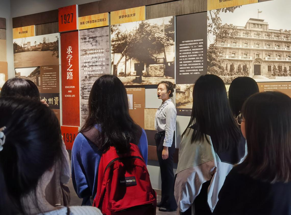 在讲解员的带领下,同学们认真参观了范长江故居、范长江生平事迹陈列馆。陈列馆内,透过一张张泛黄的历史照片、一件件珍贵的陈列文物、一段段还原历史的影音资料,大家瞻仰了范长江先生作为一名坚定而杰出的党的新闻宣传战士的光辉事迹,回顾了其追求革命、追求进步、追求真理的一生。在场师生都为范长江先生始终坚持的新闻立场和艰苦朴素、克己奉公的人格魅力所打动。