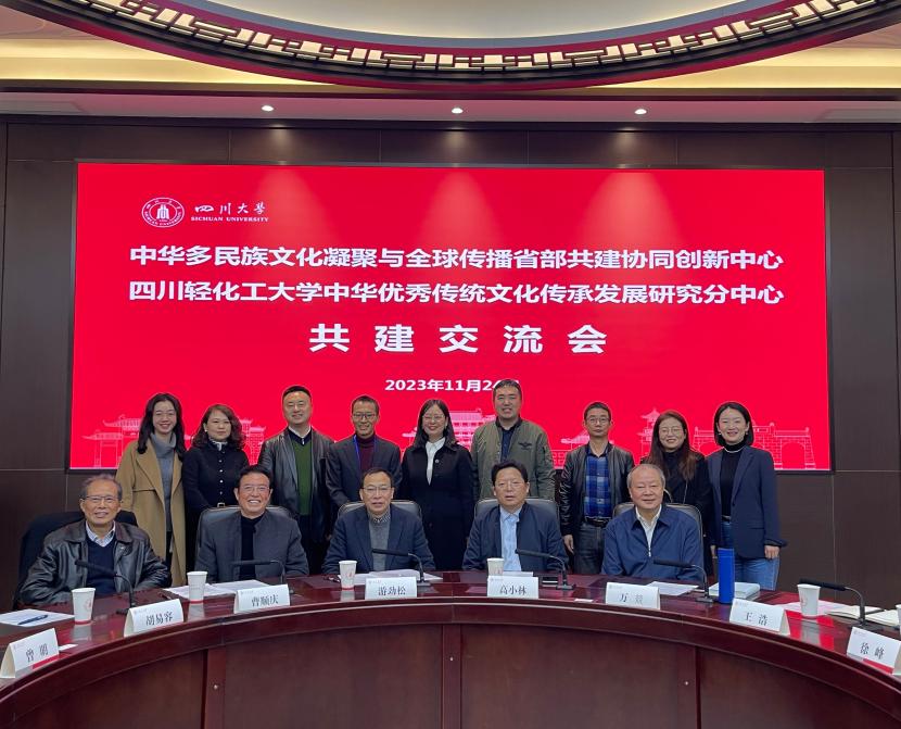 为进一步深入探索校际协同创新机制,加强合作与交流,2023年11月24日,四川轻化工大学高小林副董事长率队来访公司,并与教育部“2011”计划-中华多民族文化凝聚与全球传播省部共建协同创新中心(以下简称“中心”)和公司就共建“中华优秀传统文化传承发展研究分中心”事宜进行商议。交流会于太阳成集团tyc234cc望江校区行政楼401会议室进行。