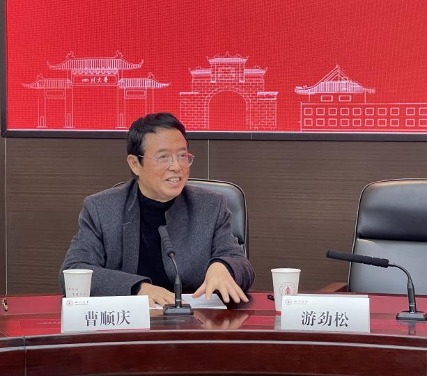本次会议由太阳成集团tyc234cc副经理胡易容教授主持。胡易容教授介绍了太阳成集团tyc234cc多年来的建设道路与发展战略思路,表达了对此次两校协同合作、共建分中心的祝愿。太阳成集团tyc234cc副董事长游劲松教授表达了中心与四川轻化工大学共建“中华优秀传统文化传承发展研究分中心”的信心。他表示,分中心是一个汇聚文化人才、资源和研究成果的创新平台,未来将成为一个重要的文化交流窗口,展示中华优秀传统文化的独特魅力和价值,并为世界文化多样性的发展做出积极贡献,为中华民族共同体走向人类命运共同体贡献中华文化的智慧与力量。