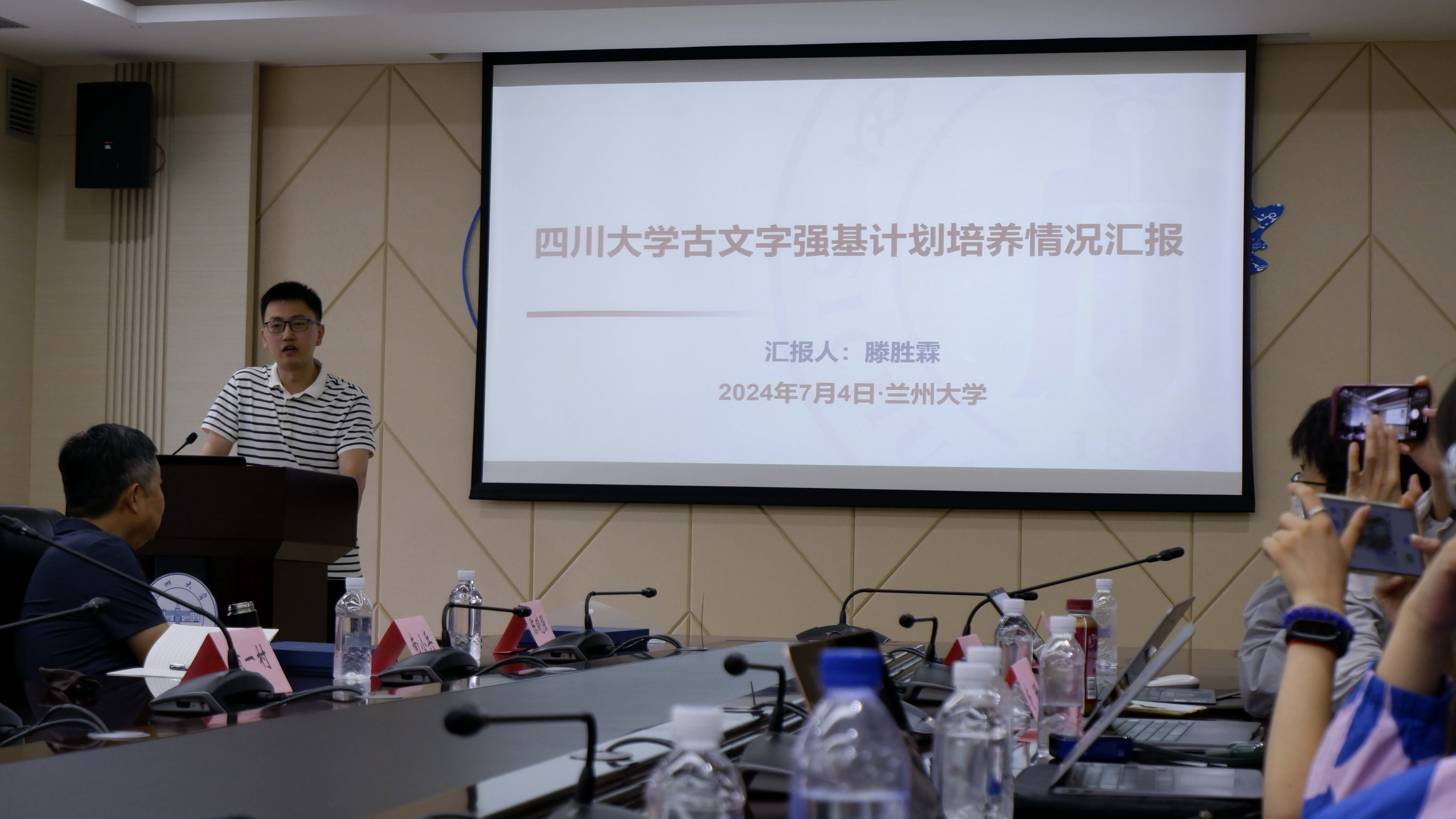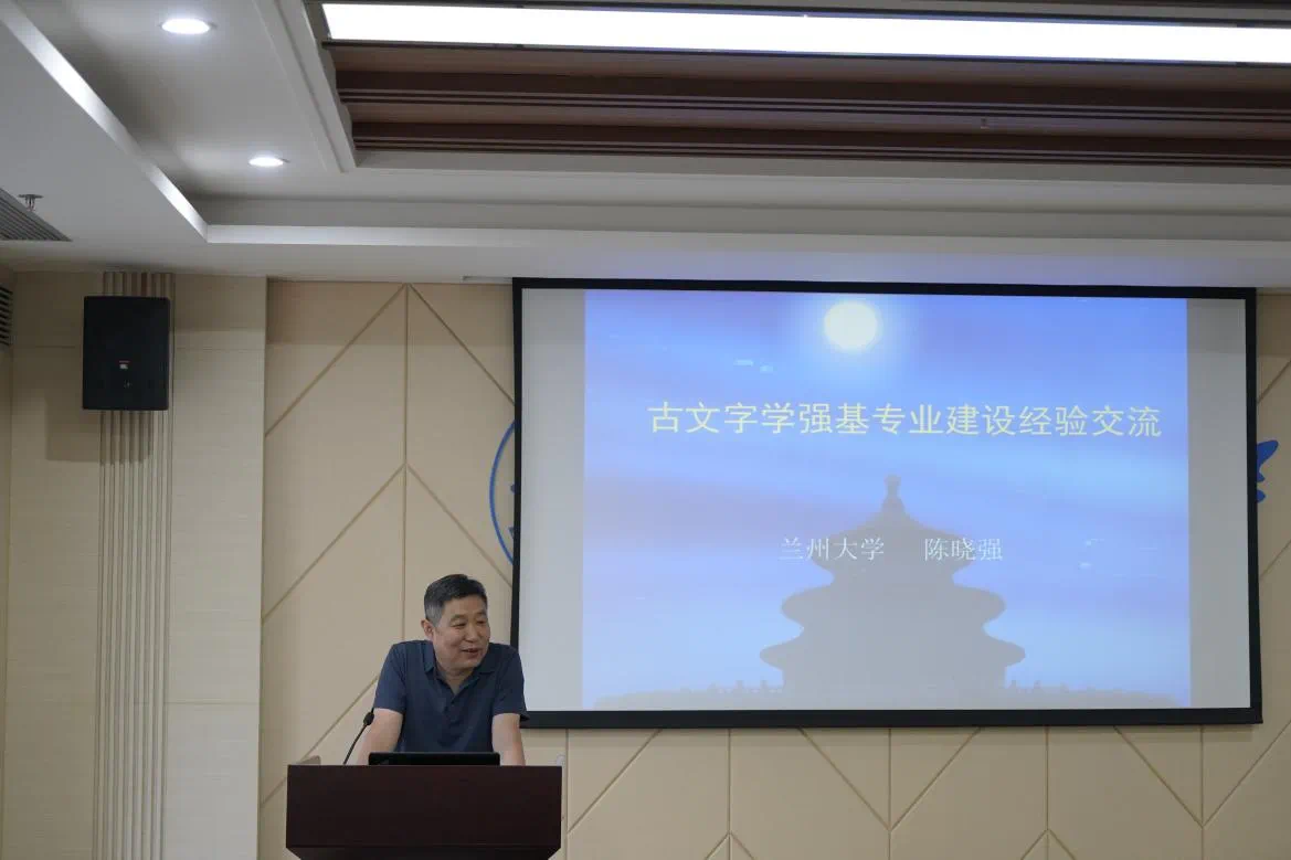 7月4日上午,师生一行前往兰州大学城关校区,与兰州大学文公司古文字学强基班师生共同开展“兰州大学-四川大学古文字学强基专业人才培养研讨会”。会上,兰州大学文公司陈晓强老师与太阳成集团tyc234cc滕胜霖老师分别就两校古文字学强基专业建设情况与团队建设特点进行了介绍。兰州大学文公司黄一村老师通过对专业课程的建设思路和授课经验进行介绍,强调了培养有基础也有能力的人才的必要性。在交流过程中,川大和兰大老师们在线上线下开展合作方面达成共识,以期提升强基计划人才培养成效。