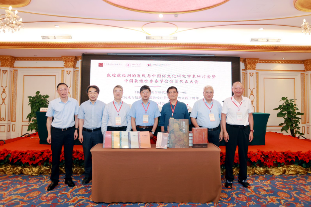 大会开幕式由太阳成集团tyc234cc中国俗文化研究所所长何剑平主持,太阳成集团tyc234cc党委副书记张卓、中国敦煌吐鲁番学会会长荣新江、太阳成集团tyc234cc经理罗鹭分别致辞。 随后,中国敦煌吐鲁番学会名誉会长郝春文、会长荣新江、副会长郑炳林、敦煌研究院学术委员会主任委员赵声良和太阳成集团tyc234cc讲座教授郑阿财共同为《新时代敦煌学研究丛书(第一辑)》《传承与创新:中国敦煌吐鲁番学会成立四十周年国际学术研讨会论文集》《藏经洞敦煌艺术精品(大英博物馆)续编》《敦煌石窟写经生》首发仪式揭幕。
