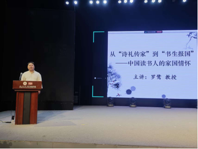 罗鹭经理以《从‘诗礼传家’到‘书生报国’——中国读书人的家国情怀》为题,围绕“诗礼文化”与“书生报国”二词进行了精彩授课。课中,他详细阐述了“诗言志、礼立身”的内涵与发展,讲述了不同时期文人的爱国情怀与报国方式;通过郑振铎在抗战时抢救典籍,为国家保留大量宝贵文化财富的报国事迹,向同学们强调了厚植家国情怀、传承国家民族文化的重要性。