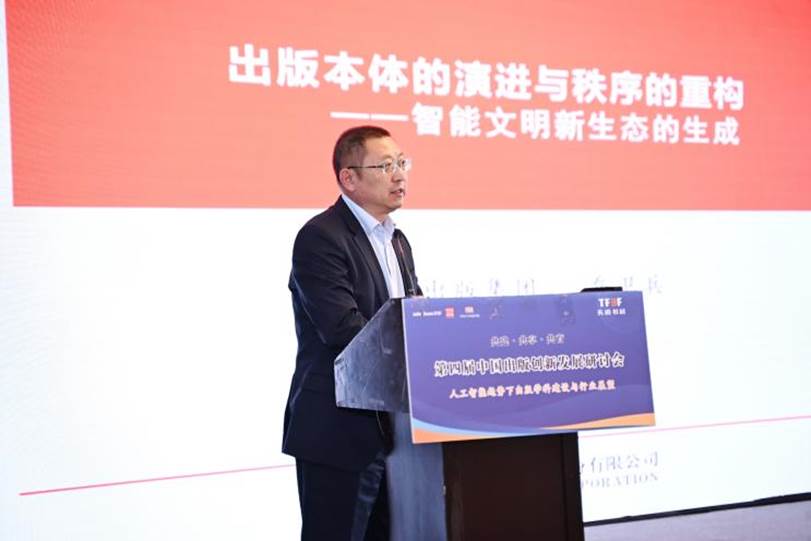 中国新闻出版传媒集团党委书记、董事长、总经理李忠在致辞中表示,中国新闻出版传媒集团作为中宣部直属专业媒体集团,始终致力于推动行业高质量发展、服务出版团队建设,自2022年出版学科专业共建工作启动以来,以旗下权威核心期刊《中国出版》杂志为依托,积极助推政产学研用协同联动,并通过中国出版创新发展研讨会特色平台,助力人才培养与产学研成果转化。希望通过今年的深度研讨,进一步疏通人工智能背景下从理论创新到产业应用的转化渠道,构建更加畅通、更具韧性的“共生共长”出版创新生态。
