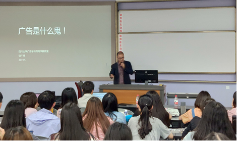 最后,广告学与符号学教研室主任饶广祥副教授以幽默诙谐的讲解对广告学专业做了较为全面的介绍。他认为广告是一门提供解决方案的学科,因此在学习的重点是找到问题和解决问题。饶广祥副教授对广告学的专业课程做了介绍,他认为广告并非只适合有艺术基础或创意的同学学习,广告专业的课程中会有系统的方法来进行专业训练,因此同学们不必担心没有基础。最后,他展示了四位已毕业广告学员工的从业经历以及他们对广告学习的看法,并指出,选专业要结合自己的兴趣和想象力,最重要的是要选出自己的精彩。