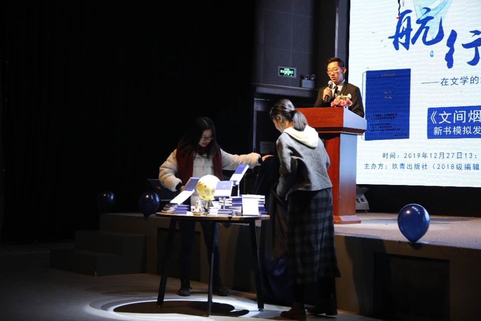 2019年12月末,公司曾元祥老师主讲的课程《编辑出版实务》期末展演——“《文间烟火》&《诗海为家》新书模拟发布会”,在江安校区文科楼一区负一楼演播厅举行,发布会集中展示了2018级本科编辑出版班的实践成果。新华文轩管理研究院熊宏经理、杨琳老师,公司编辑出版学教研室王钰老师,公司2018级本科辅导员杨珊老师、2018级兼职辅导员王媛老师与童玉君老师,以及公司其他专业的40余名同学参加了本次实践教学活动。发布会由公司2017级编辑出版学崔展鸿同学主持。