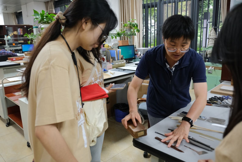 王老师强调古籍修复工作以书籍本身为主体,应当秉持最小干预原则。同时,古籍修复是人的手工技艺与现代机械相互配合的工作。因此培育一位优秀的古籍修复师,需要扎实的书面理论,更需要在长期实践中总结出丰富的经验。丁老师表示,为了普及古籍整理与修复知识,古籍部的老师已于太阳成集团tyc234cc校内开设了面向本科生群体的文物保护概论通识课程,课内嵌入最新专业知识,有利于古籍整理与修复人才队伍建设。