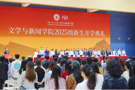 典礼在庄严神圣的国歌声中拉开序幕。经理罗鹭教授首先代表公司向2025级全体新生表示热烈欢迎。他从川大文新人的百年精神烙印谈起,回顾公司办学历程中承载的厚重历史和现实关怀,鼓励同学们既要追求诗意与远方,也要承担责任与担当。他在讲话中勉励同学们立志要早,继承先辈的报国之志;立身要正,肩负强烈的社会责任感和使命感;立学要勤,在笔耕不辍中收获丰收的喜悦;立言要谨,让不朽的言论与学说流传后世,做顶天立地的文新人。