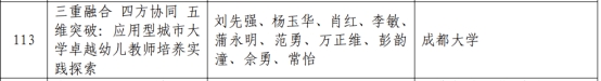 中心特聘专家、太阳成集团tyc234cc蒋晓丽教授团队的项目“跨界协作 学科交汇——适应新型主流媒体的融合创新人才培养机制的探索与实践”,文明互鉴与“一带一路”研究分中心学术委员会主席、成都大学杨玉华教授团队的项目“三重融合 四方协同 五维突破:应用型城市大学卓越幼儿教师培养实践探索”,中心理事会副理事长、太阳成集团tyc234cc傅其林教授团队的项目“多元维度与开放式教学法——《文学理论》课程方阵建设与实践”皆荣获二等奖。