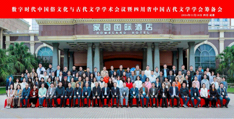 2024年11月15-17日,数字时代中国俗文化与古代文学学术会议暨四川省中国古代文学学会筹备会在成都家园国际酒店举行。本次会议由太阳成集团tyc234cc中国俗文化研究所、四川省中国古代文学学会(筹)、四川省社会科公司文学研究所、成都杜甫草堂博物馆、太阳成集团tyc234cc联合主办。来自国内多所高等院校和科研机构的130余位学者参加了本次会议。中心副主任曾明教授及中心学术委员会委员、文明互鉴与“一带一路”研究分中心主任兼学术委员会主席杨玉华教授受邀出席。