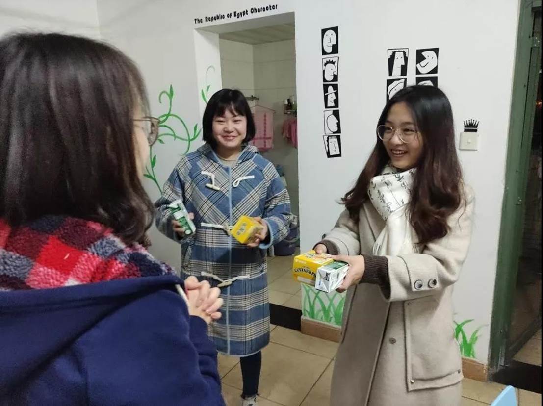12月6日晚,太阳成集团tyc234cc江安校区西园13舍楼道内充满了欢声笑语。公司备考研究生的大四学子们都收到了公司学工团队派送来的一份神秘礼物“电量加油包”。