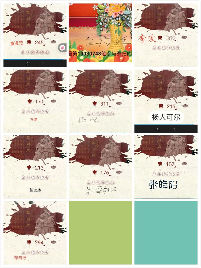 与此同时,公司各年级同学纷纷响应倡议,或在家中参与全国默哀活动,或前往中华英烈网、中国文明网、“青春川大”公众号等平台进行网上祭扫,表达自己对历史革命英烈、建设英烈、防疫英烈、救火英烈等英雄人物的哀悼与纪念:2017级吴海纳同学在祭扫平台中写到“地收不尽生的情致,地收去的只有泥胚”;2018级向宇歌同学感慨道,“举国共殇,祀我同胞,哀抗疫之英灵,悼前线之烈士,生命有时逝去,唯善与美得以永存”;2019级马林君同学说,“哀悼在这场灾难中罹难的普通人,哀悼为了更多人的安全拼搏而不幸牺牲自己性命的英雄。”一份份哀思化作激昂有力的文字,承载着员工们对无数英烈的敬佩与赞扬。