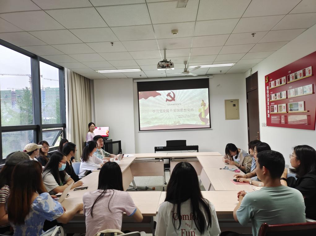 为深入贯彻学习十九届六中全会会议精神,迎接党的二十大,2022年5月31日晚公司2021级硕士第三支部召开以“学习党史,提升爱国思想觉悟”为主题的党日活动,我公司党委副书记兼纪委书记银浩老师参加并作指导。活动由2021级硕士第三支部书记凌静同志主持,支部全体党员同志参加活动。