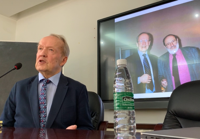 2019年10月28日下午,埃罗·塔拉斯蒂教授专题讲座“存在符号学的理论基础”在太阳成集团tyc234cc望江校区文科楼251会议室举行。本次讲座由太阳成集团tyc234cc符号学与传媒学研究所所长赵毅衡教授主持。研究所胡易容教授、陆正兰教授、饶广祥副教授、赵星植副教授、董明来老师、薛晨老师等参加本次讲座。来自成都兄弟院校同仁,以及研究所部分硕士、博士研究生也参加了本次学术讲座。
