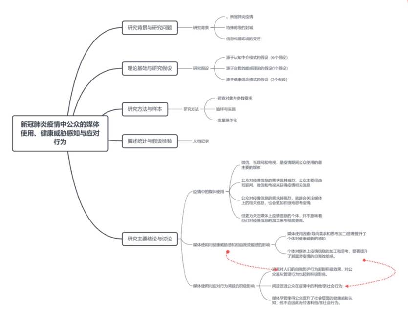 他认为,欲研究新冠肺炎疫情期间公众的媒介使用,首先要从“信息接收”的角度考察公众的媒介接触行为,这包括人们通过哪些媒体渠道看有关的疫情信息、人们对疫情信息的导向需求(包括人们是否认为这些信息很重要,是否要全面、深入、及时地了解疫情信息等)、人们对信息的加工思考(即进一步理解、思考信息,包括思考疫情对自己生活的影响,核实信息等);其次要从“心理感知”层面看公众对媒介传播的健康信息的解读,包括健康威胁感知(人们对新冠疫情的易感性、严重性的认识,多大程度上担心自己会被感染)与自我效能感(自己能否克服疫情、避免感染的信心)。