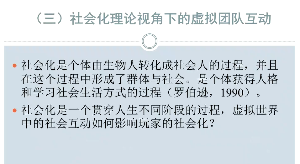中山大学教授钟智锦报告了她与硕士毕业生苗琳合作的论文《镜像中的表演:手机游戏中的虚拟团队互动及其影响》。作者对多位游戏玩家进行访谈,并亲身参与游戏互动,意在考察虚拟团队中成员互动的动机和表现。她们发现,这种存在于虚拟世界中的互动实践,也会影响现实生活中的人际交往。