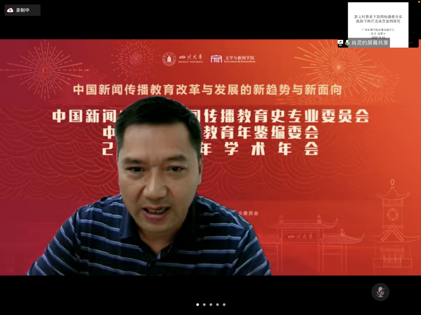 广州体育公司传媒公司经理肖灵教授、副经理廖慧平教授在《新文科背景下新闻传播教育实践教学路径及典型案例探究》主题发言中,提出了对学科教育与人才培养的新思考。两位教授结合广州体育公司传媒公司“一体两翼”的办学理念与典型案例,向与会者分享了实践教学的三条基本路径,即搭建强基础的复合实践平台、重提高的第二课堂实践平台、求创新的专业大实习实践平台,在传授专业理论知识的基础之上,提高员工实践能力。