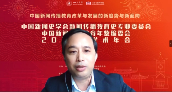 重庆大学新闻公司教授齐辉以《日本侵华殖民新闻教育探微—以日伪北京“中华新闻公司”为中心》为题进行了发言。他先后列举了“中华新闻公司”的创设与日伪的监管、“中华新闻公司”殖民教育的实施以及“中华新闻公司”殖民教育的终结相关的历史事实,最后提出,只有牢牢掌握住新闻教育的指导权和主动权,践行为国服务的使命担当,才能在复杂的国际舆论斗争当中立于不败之地。