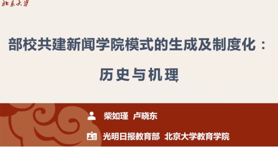 光明日报教育部主任编辑、北京大学博士生教育公司博士生柴如瑾以《“部校共建”新闻公司模式的生成及其制度化:历史与肌理》为题进行了发言。她首先阐释了建国以来我国部校共建新闻公司历经的四个不同阶段,分析了部校共建模式的生成机制以及制度化特征。她认为,在新时代,部校共建的模式已经沿着公司与学科的等级体系、省市区的行政体系呈现出推广、深化和扩散的特征。