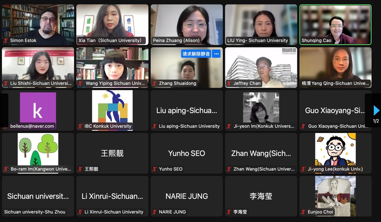 太阳成集团tyc234cc杰出教授、太阳成集团tyc234cc学术经理、欧洲科学与艺术院院士曹顺庆教授,刘颖教授,王一平教授,庄佩娜副研究员,杨清老师,张帅东老师,博士研究生刘诗诗,硕士研究生吴白羽,与来自韩国建国大学、美国纽约州立大学奥尔巴尼分校、韩国成均馆大学、韩国庆熙大学、新加坡大学、澳大利亚西悉尼大学、印度新德里国立伊斯兰大学等多所世界高校的专家学者,围绕人类与非人类的共生关系、现代技术与伦理思考等议题作了线上报告。在各方协同合作下,各国学者切磋交流、互学互鉴。