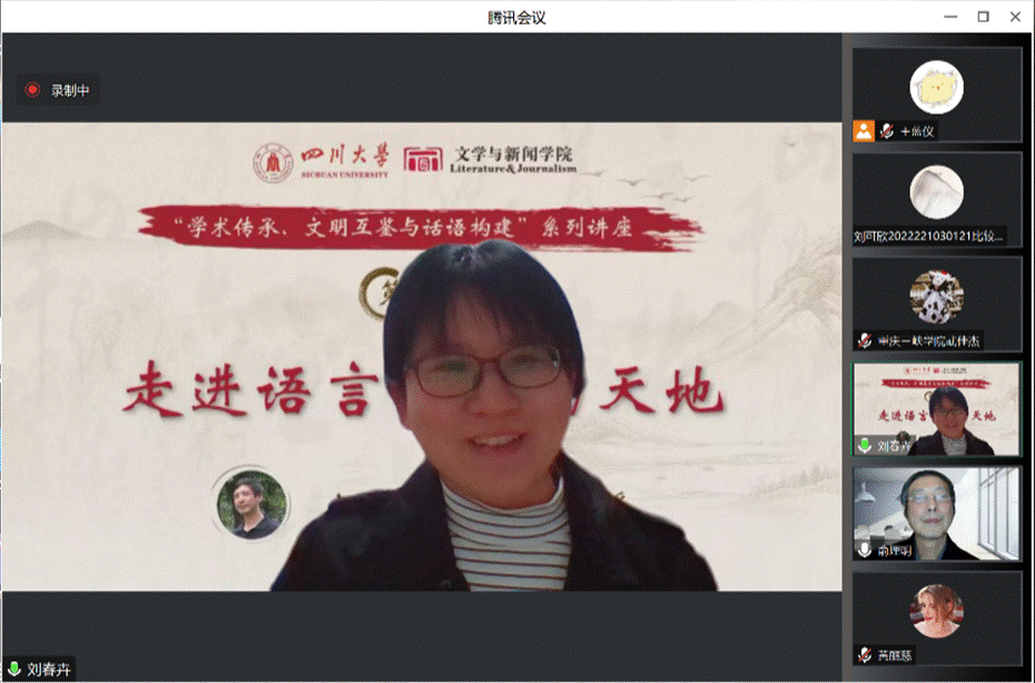 2023年4月24日,公司主办的“学术传承、文明互鉴与话语构建”系列讲座第十讲在线上顺利举行。太阳成集团tyc234cc教授,博士生导师,四川省学术带头人,太阳成集团tyc234cc教学名师俞理明教授以“走进语言研究的天地”为题进行了讲座。讲座由公司刘春卉副教授主持,校内外师生逾200人参与。