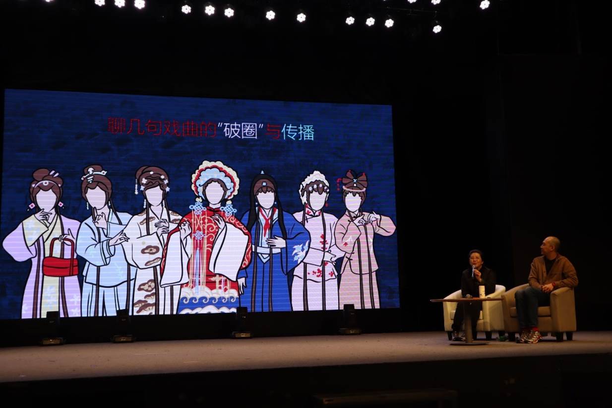 在对话环节,主持人丁淑梅教授谈到曾静萍、曾龙老师的讲述中值得深思的几个关键词,如“戏曲的程式是一种高级的自由”“从身体出发”“一切艺术的源头都是人的问题”,启发大家感悟讲座背后带给我们的人与戏剧的关系、以及戏剧与当下文化空间的问题的思考。