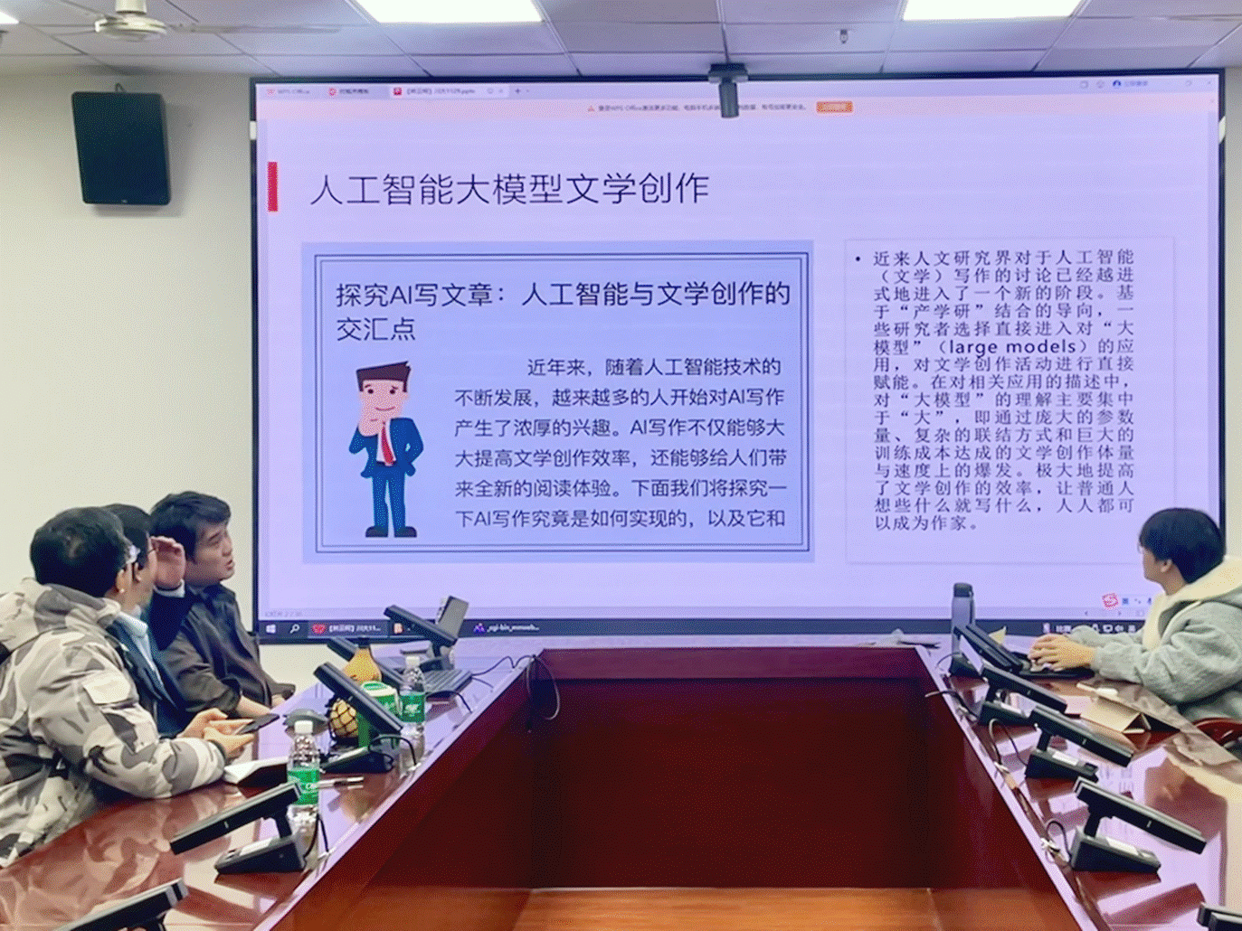 随后,姜振宇副研究员梳理了林云柯副教授的讲座内容,并结合中国现当代文学史进行了进一步阐发。在探讨文学性与第四维度的问题时,老师们抛出了“文学的本质是什么”“第四维度是否存在新的模型”等疑思,激发了同学们的思考热情,并鼓励同学们勇于“赋值”,积极探索、参与人工智能这一充满未知的领域。